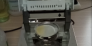 二、儀器本身有個自動降溫過程,為求得數(shù)據(jù)的準(zhǔn)確性,故在進(jìn)行第二次測量的時候先等待幾分鐘,使儀器顯示溫度為40度以下時再進(jìn)行第二次測量,這次我們加大膠水樣品量為7.025克,將膠水均勻滴于鋁箔盤上,溫度照樣設(shè)定在120℃,按“START”鍵開始進(jìn)行測試,由于這次的膠水量比較多,所以儀器此次用了17分鐘43秒才測試結(jié)束,測試結(jié)果數(shù)據(jù)顯示31.17%(含水率),按“單位鍵”切換其顯示數(shù)據(jù),則屏幕顯示其固含量為68.83%。